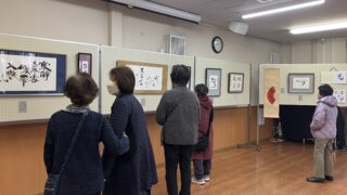 2026年2月2日(月) 13:00~16:00大西松華先生の作品それぞれの作品の下に、作者名と作品の文字を読みやすく楷書で記されています。代表の江口さんの作品紹介 出展された太田さん・江口さん・美野輪さん多くの来場者があり、皆さん熱心に鑑...