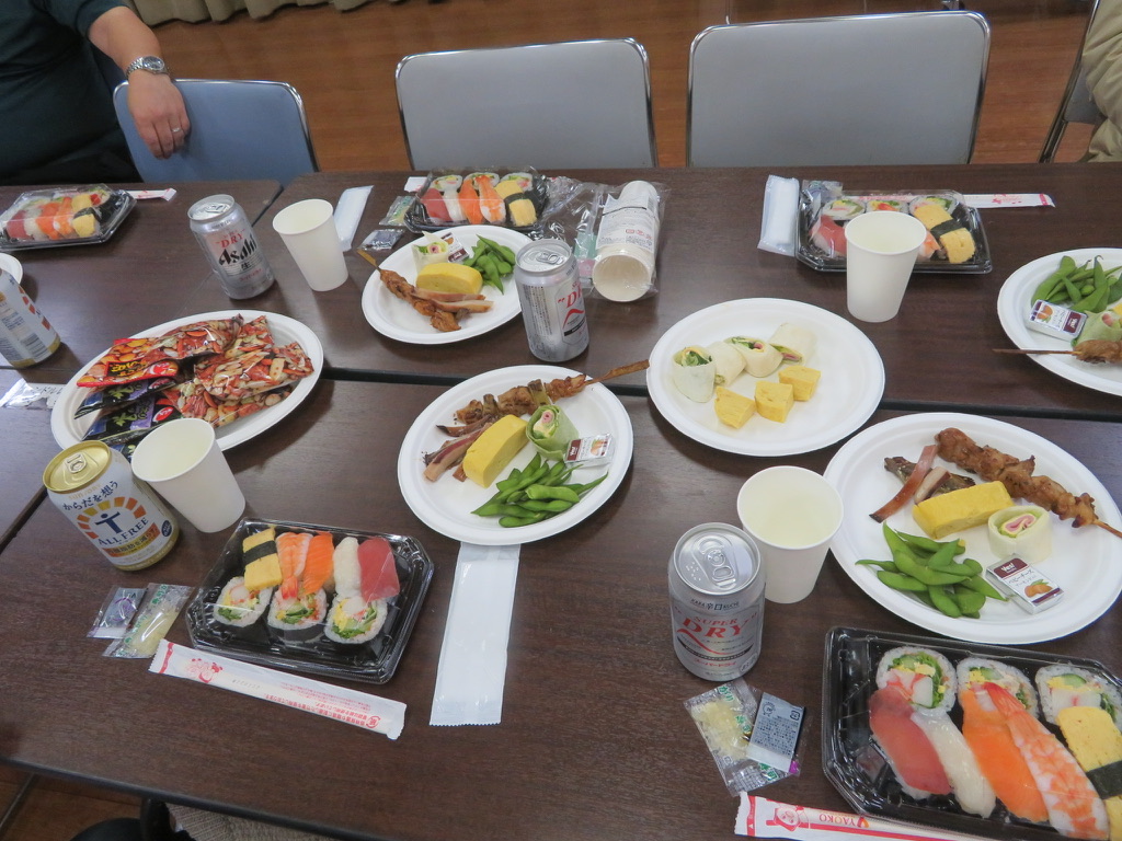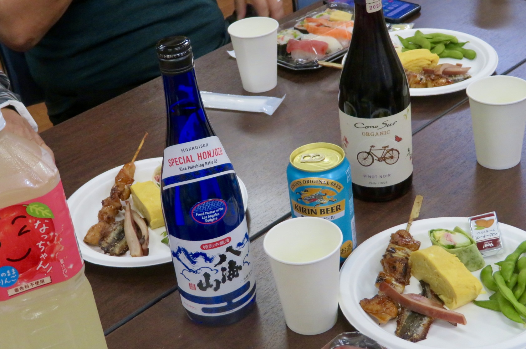 度だけですから、大いに盛り上がります。ワイン、ビール、日本酒に美味しいおつまみやお寿司を