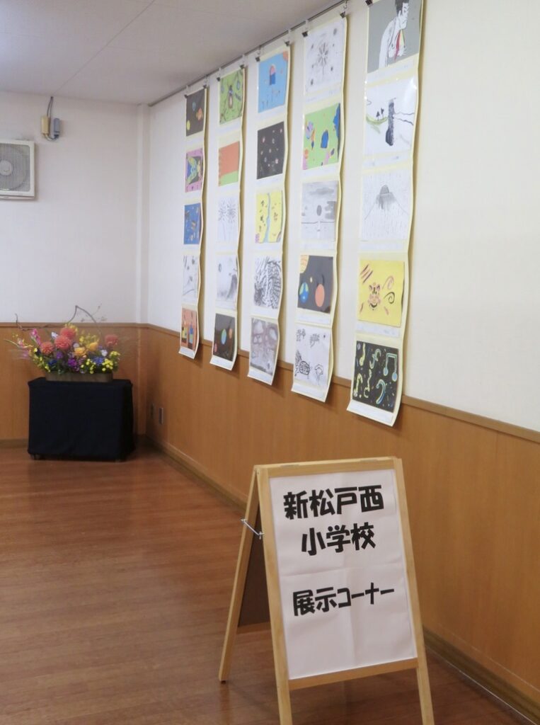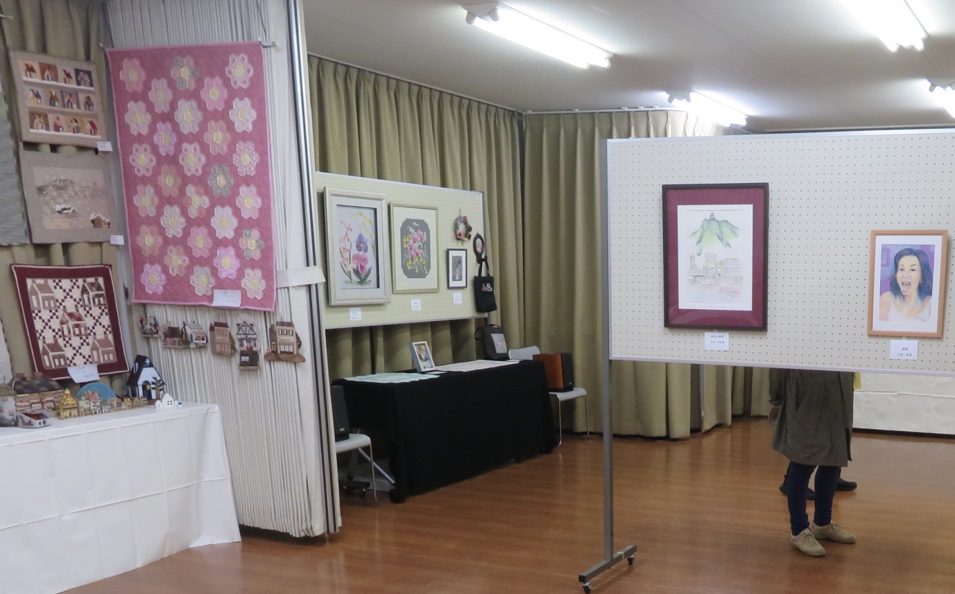 手芸関係、新松戸西小学校等の皆さんの作品が展示されました。会場の模様を簡単に紹介致します。