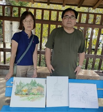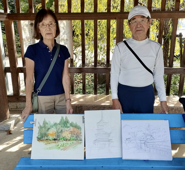 始めた紅葉と五重の塔がとても美しく、気持ちよく描けました。彩色は帰宅後のお楽しみに。