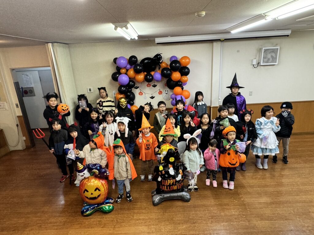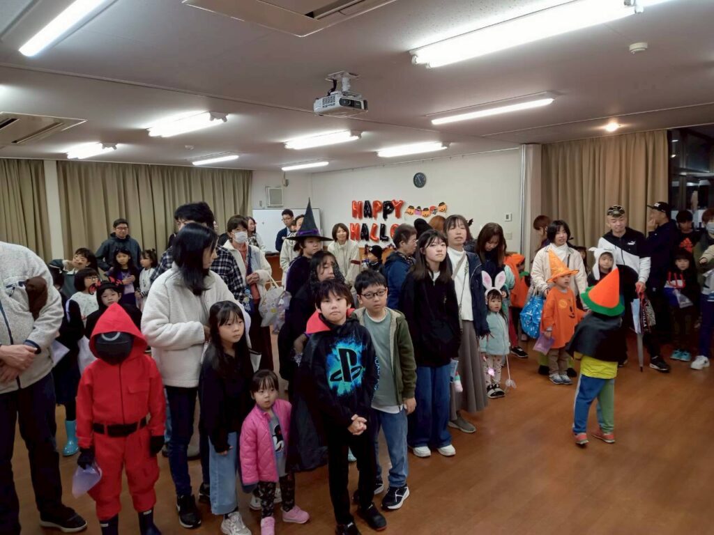 小雨の中、ハロウィンを始まりました。受付の4時半になったら子供達がどんどんやってきました。日曜日だったので、お父さんやお母さんやお孫さんと一緒のおばあちゃんもたくさん来てくれました。子供達の人数は全部で53人!五番街の子とそのお友達、お孫さんです。