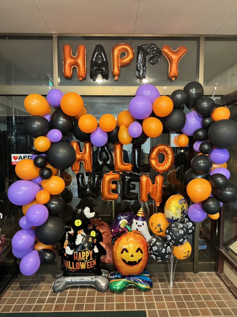 フォトスポットの風船を潰すのはもったいないので、ハロウィン当日(10/31)まで、D棟集会所に飾っています。よかったら写真を撮ってみてはどうですか?