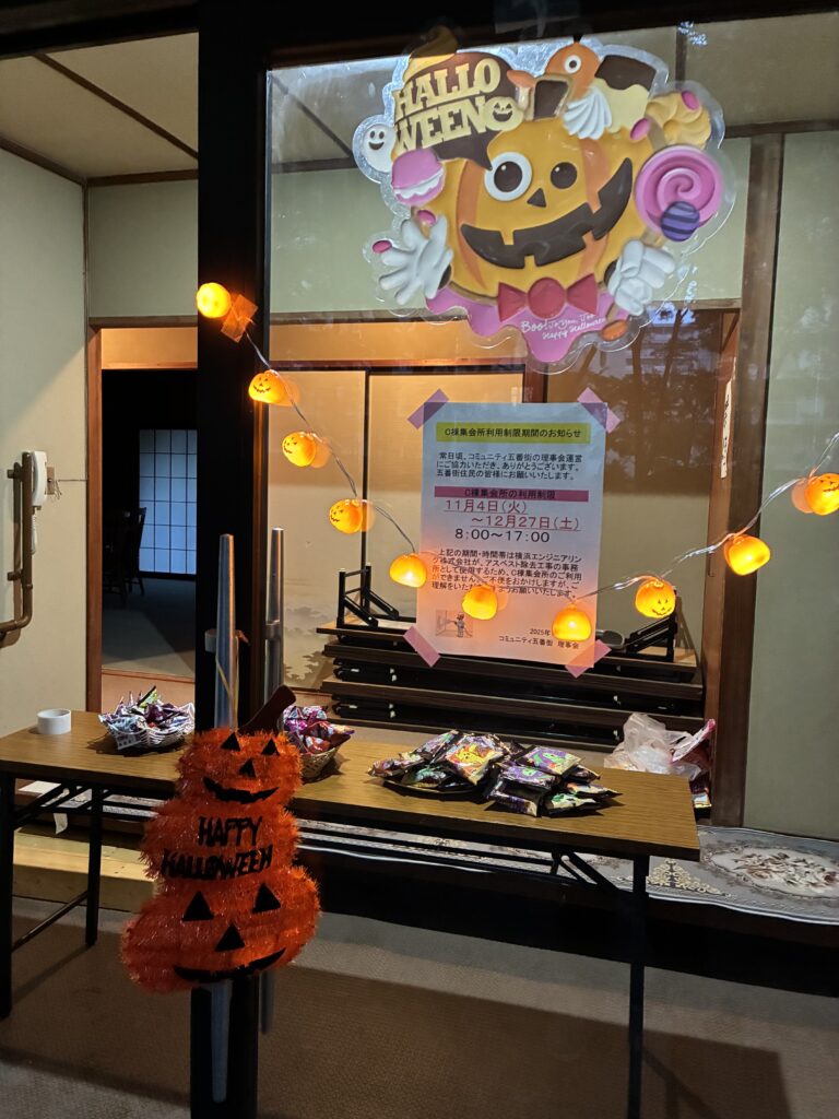 今年は、子供達が、A棟集会所、C棟集会所、D棟集会所、管理センター前の4カ所の「おかしポイント」を巡って袋いっぱいにお菓子をもらいました。