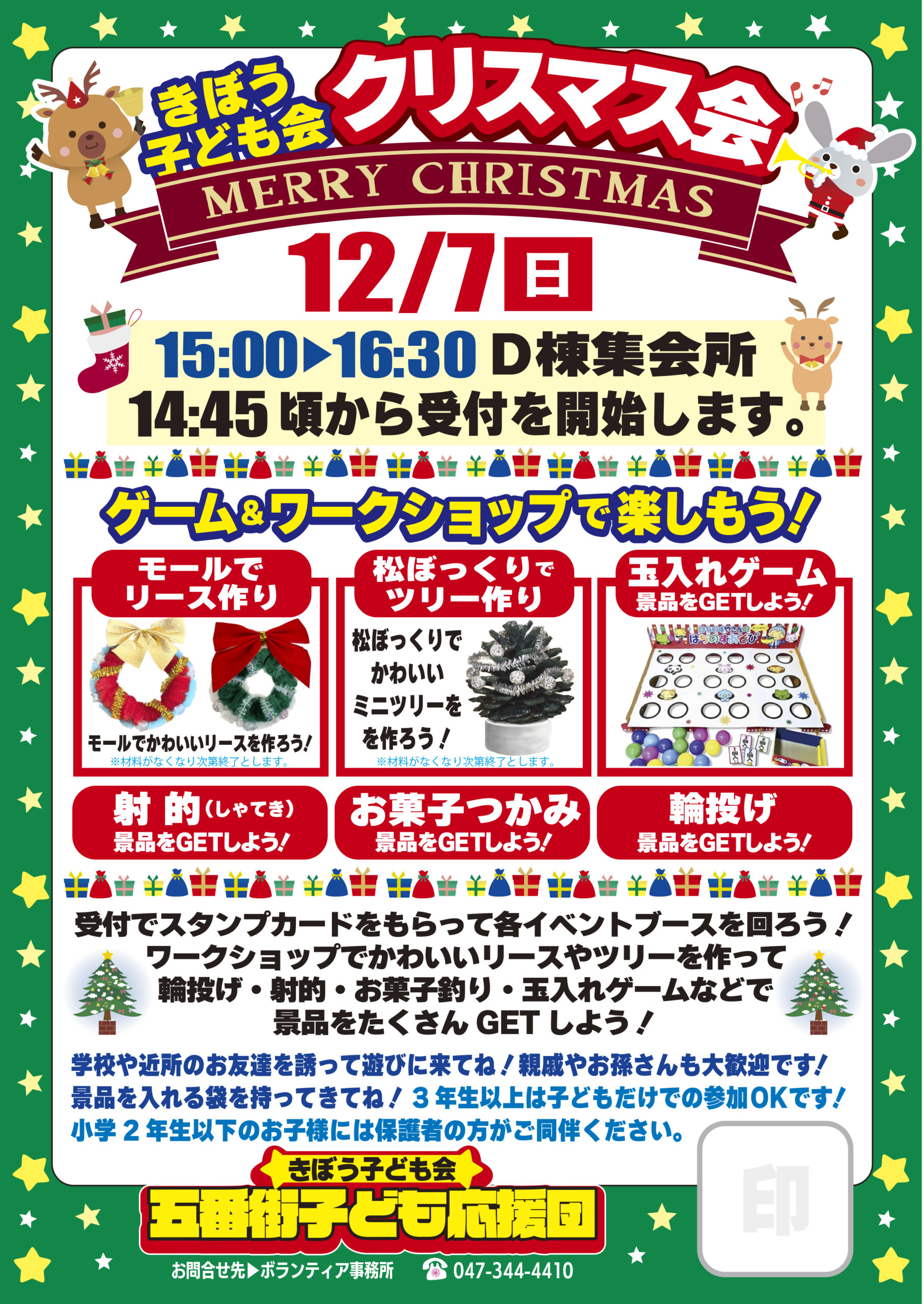 12月7日(日)にD棟集会所で、きぼう子ども会の「クリスマス会」が行われました