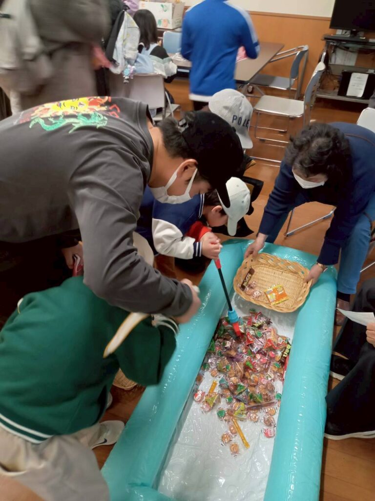 他にも「お菓子つかみ」、「ボール投げ」、「輪投げ」もありました。「お菓子つかみ」のお菓子がすぐになくなってしまったね。マジックハンドはむずかしかったかな