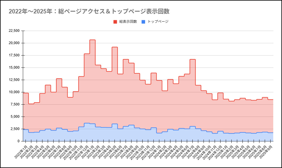 各種「メニュー」ページへのアクセス数の遷移です。メニューページのみへのアクセス数で、その下に紐づく細かい記事へのアクセス数は含みません。