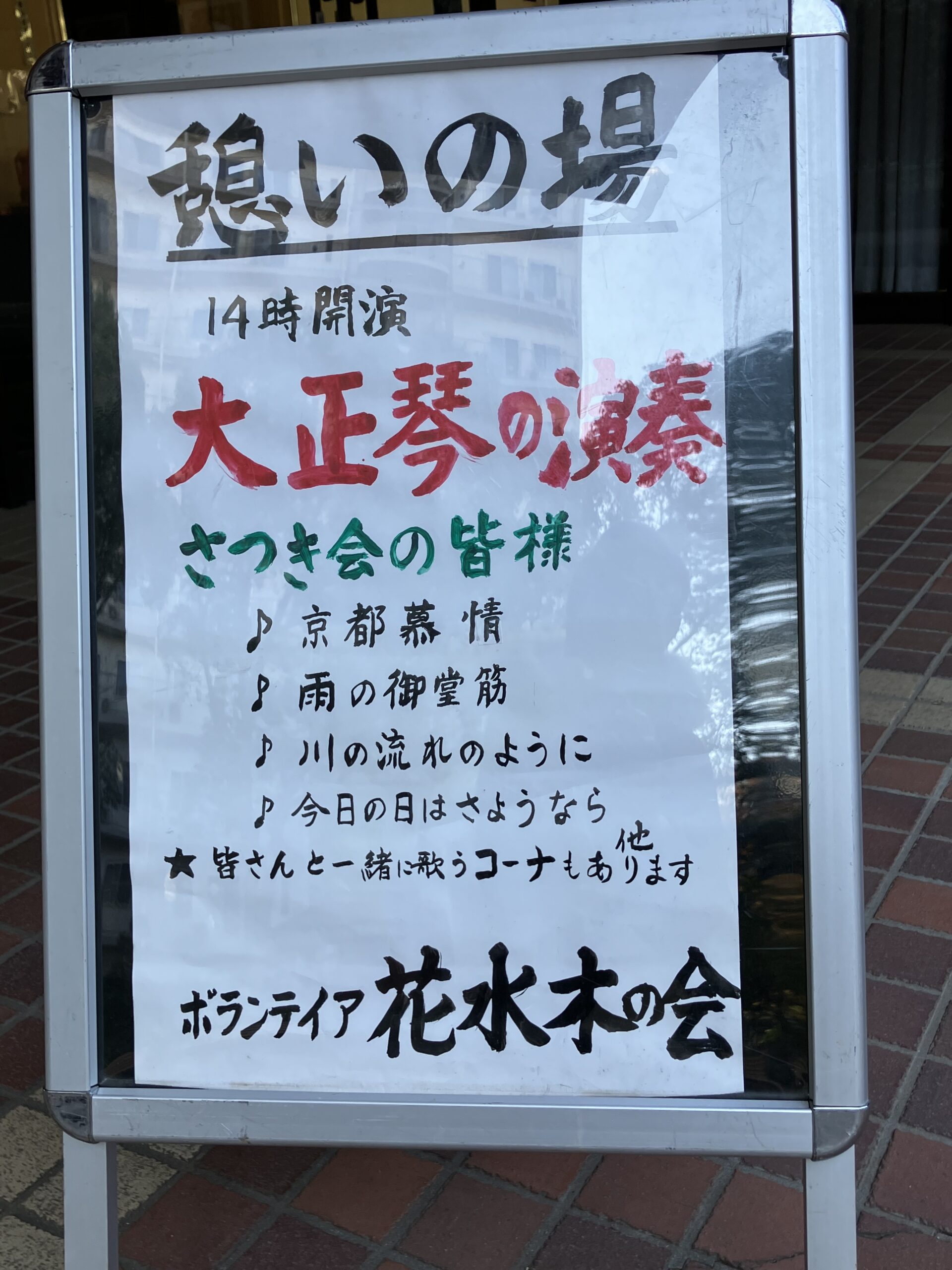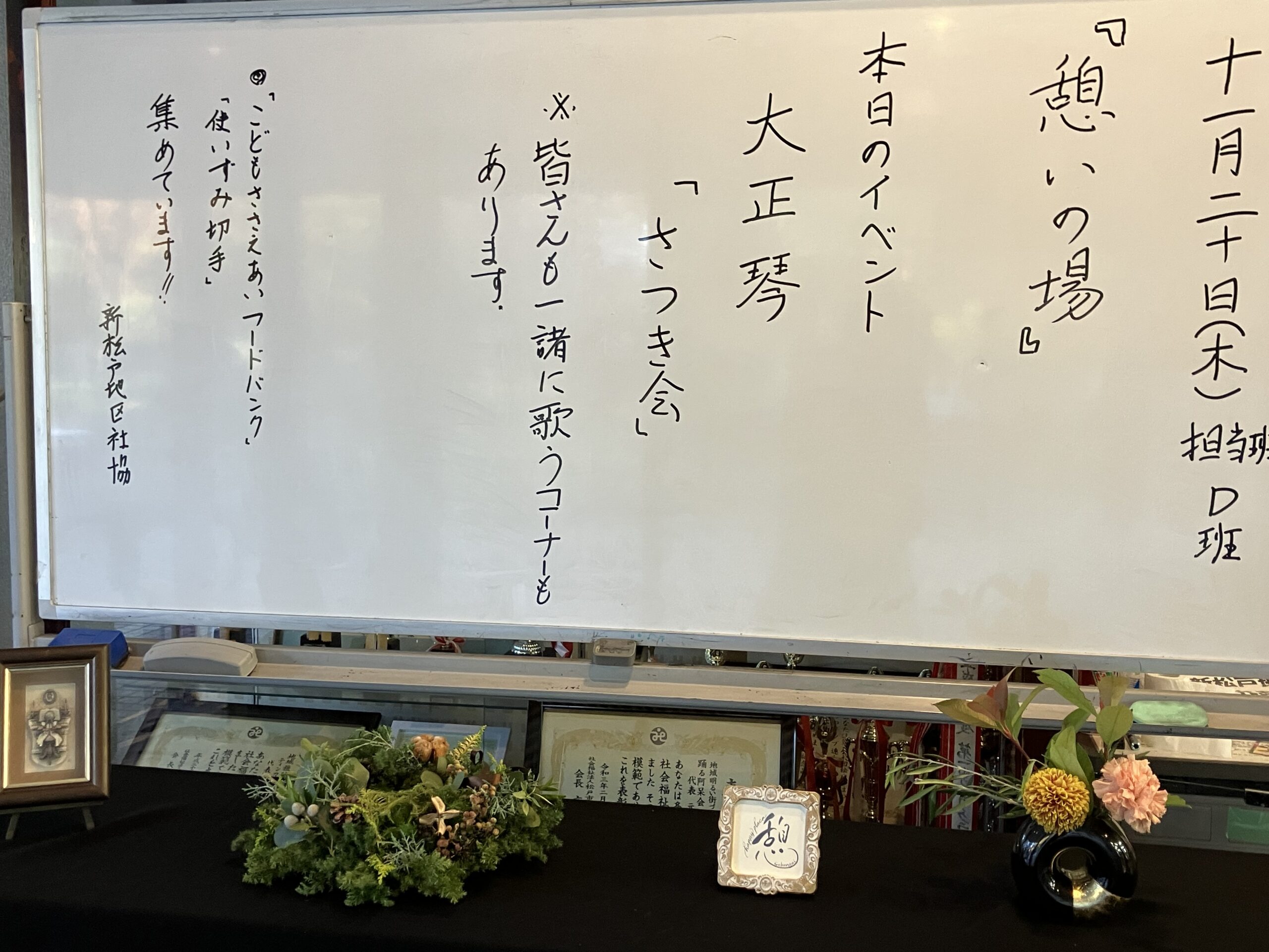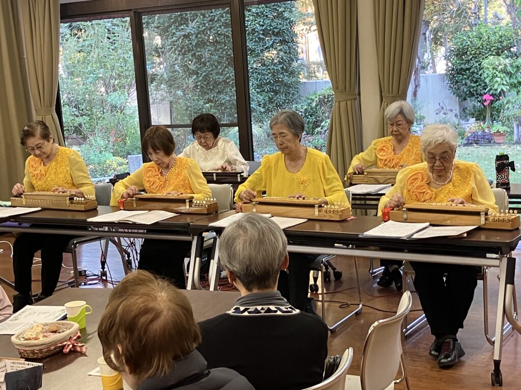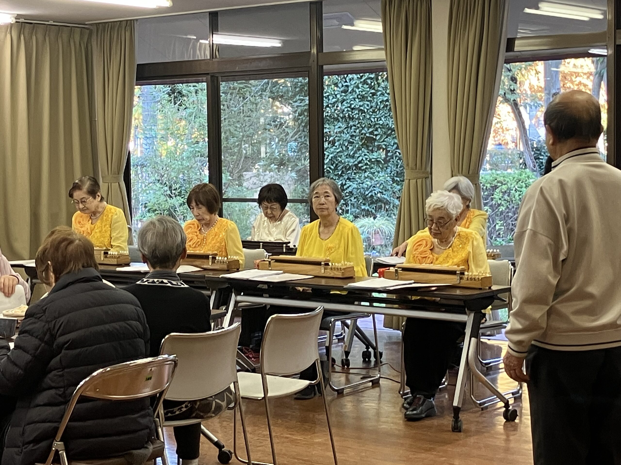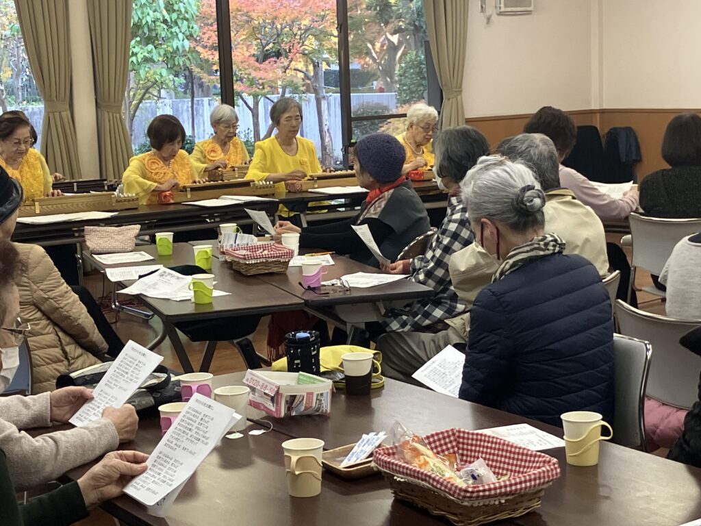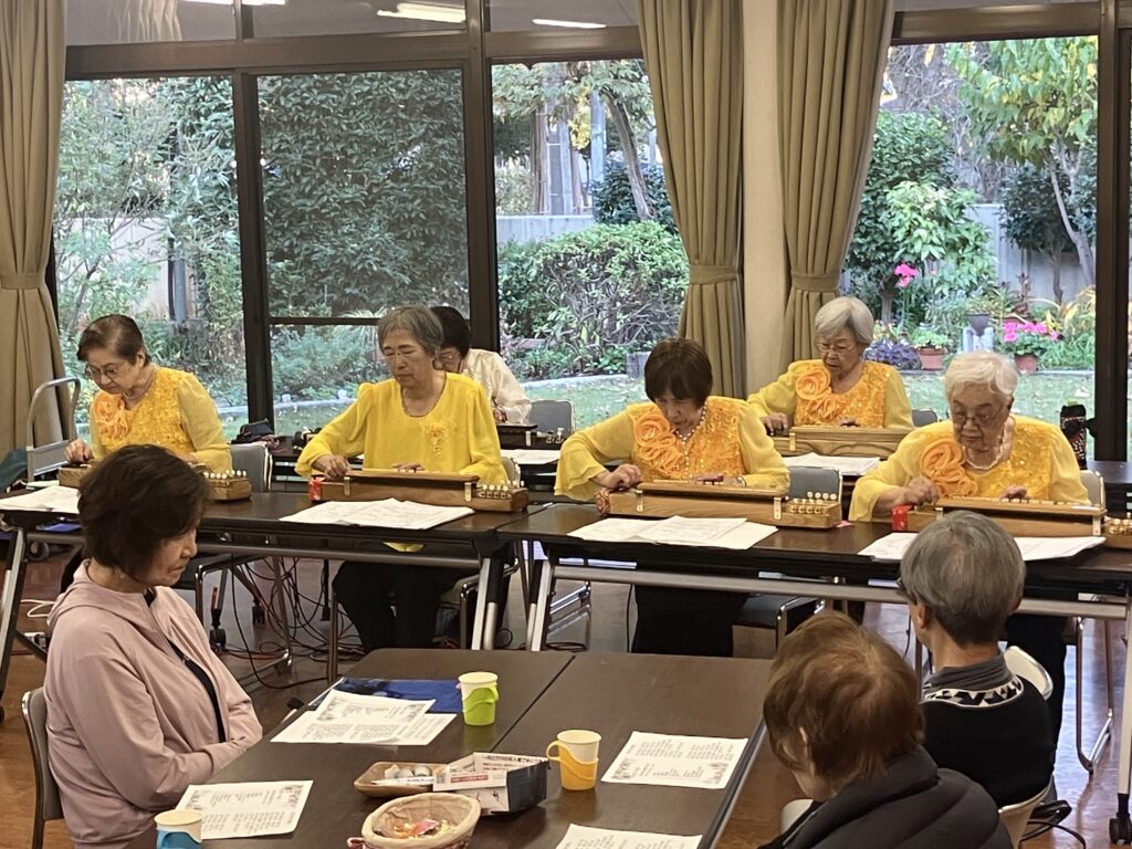 第254回 憩いの場 大正琴「さつき会」の演奏 憩いの場 2025.11.22 2025年11月20日(木) 13:00~16:00 昨年に続き今年も演奏していただきました。華やかな黄色の衣装が素敵です❣ 皆さんがよく知っている曲を13曲演奏していただきました。大正琴の懐かしい様な心が癒される音色に聴き入っていました。 浜辺の歌・花など大正琴の演奏に合わせて皆さんで合唱!アンコールは「ふるさと」を皆さんと一緒に! 演奏後も閉会までコーヒーを飲みながらおしゃべりを楽しんで頂きました。