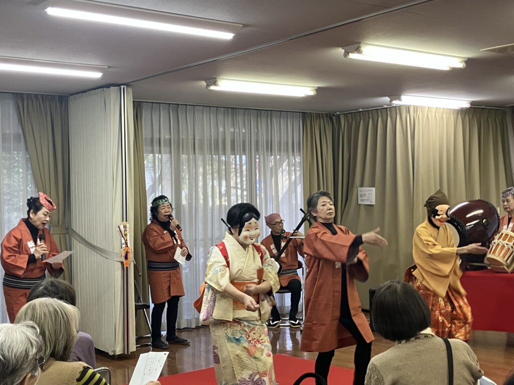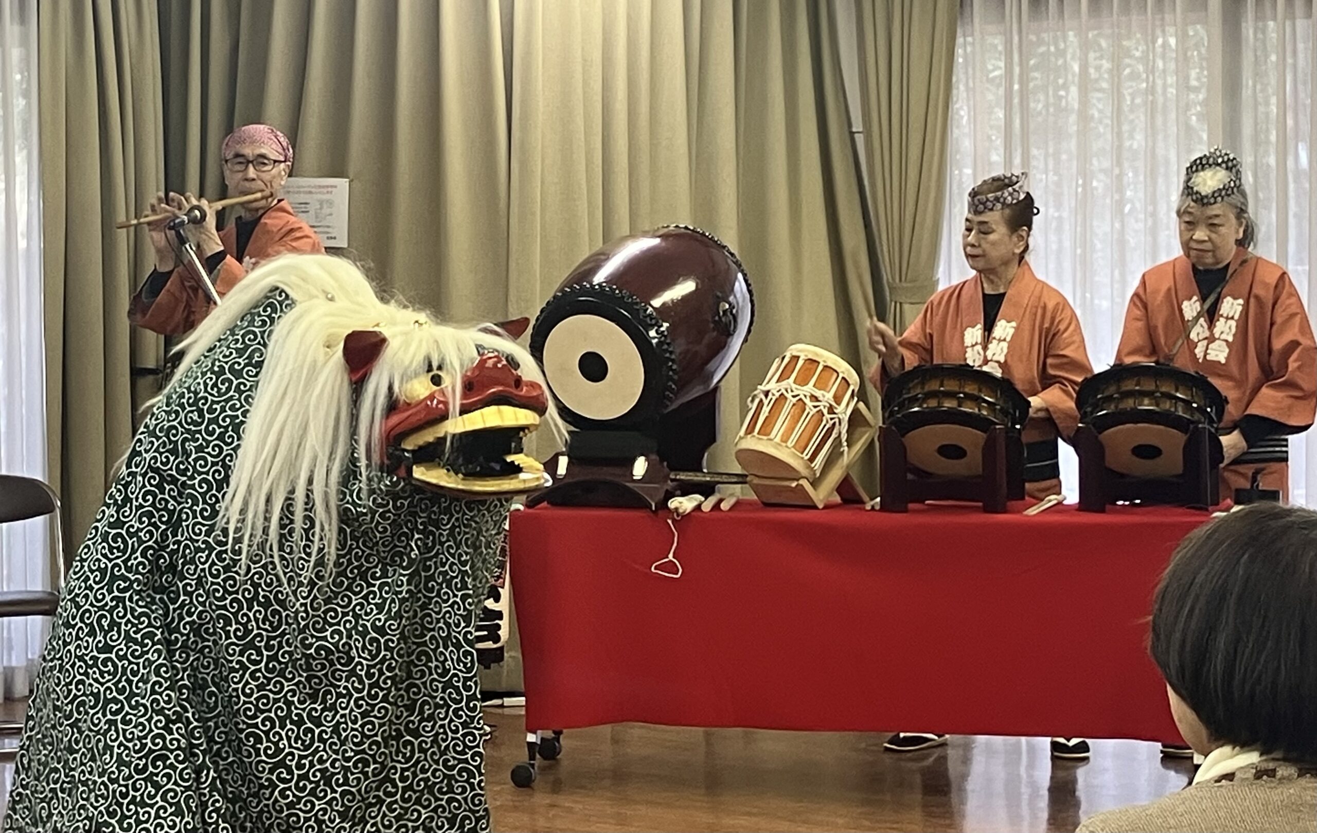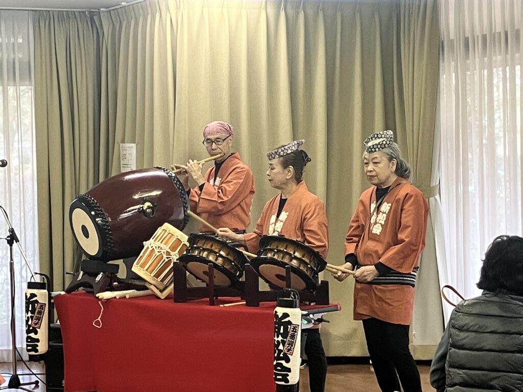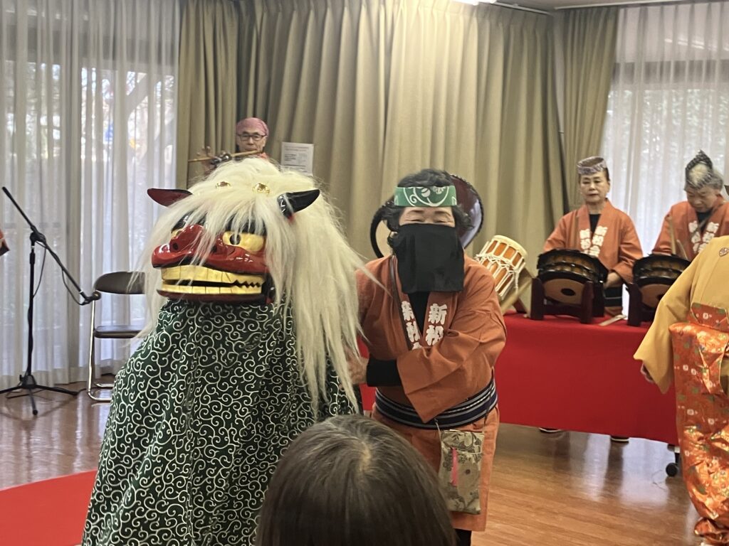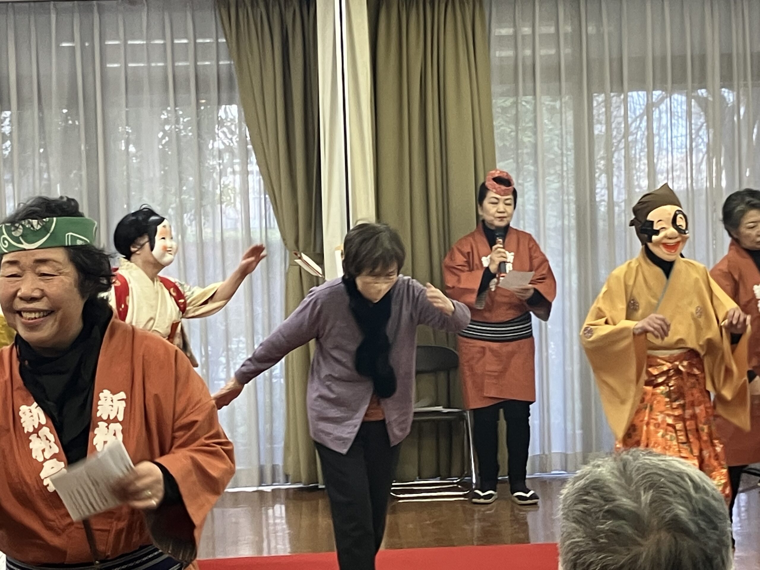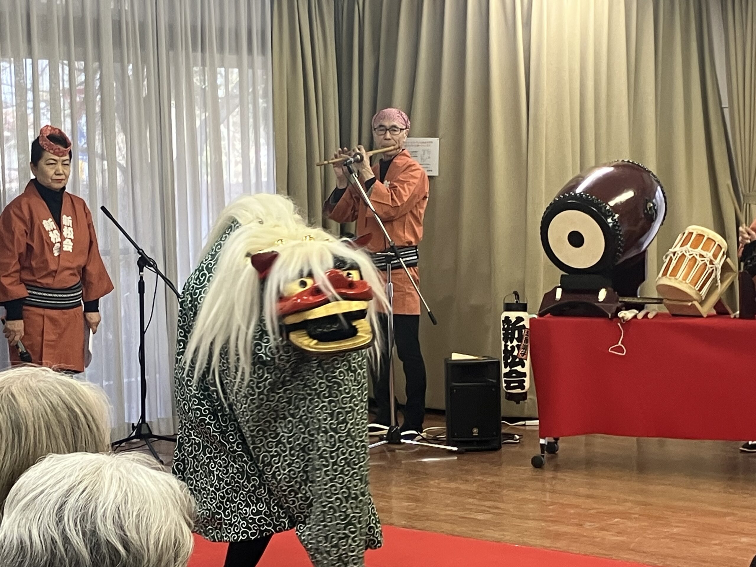 第256回 憩いの場 五番囃子「新松会」 憩いの場 2026.01.16 2026年1月15日(木) 13:00~16:00 新年にふさわしい獅子舞から始まりました! 切れのある獅子舞! 来場者の頭を厄払いにお獅子がガブリと嚙んで廻ります! 花水木の会からもおひねりを獅子の口に~! おかめひょっとこのコミカルな羽根つき 中村さんのひょっとこ踊り!網野さんのダイナミックな津軽三味線の演奏 網野さんの津軽三味線のお話の後、演奏に合わせて津軽甚句を歌い上げます! ソーラン節は踊り手も参加して! アンコールは、ソーラン節を皆さんと一緒に歌い、踊り、満員の会場は華やかに賑やかに終了!