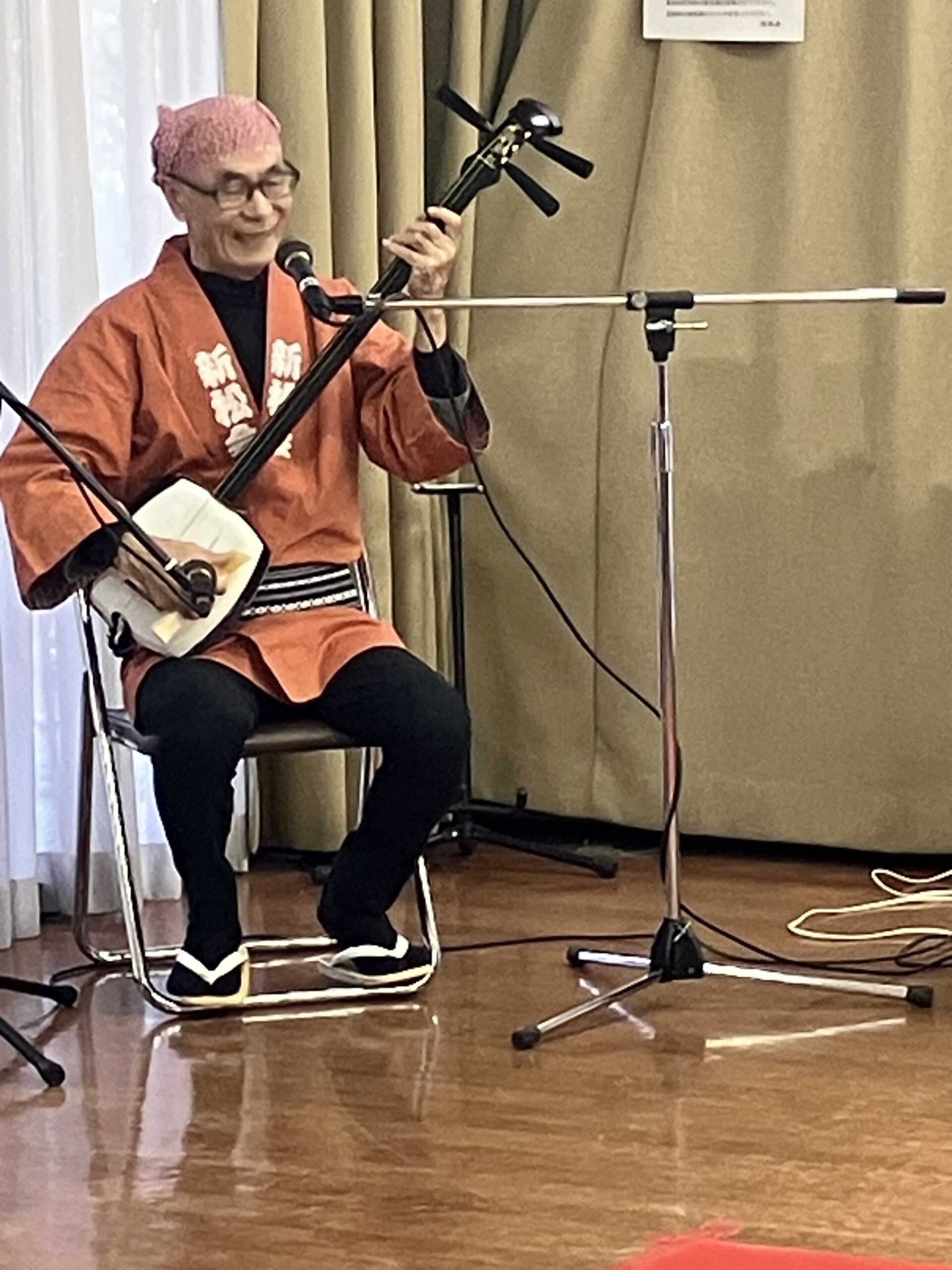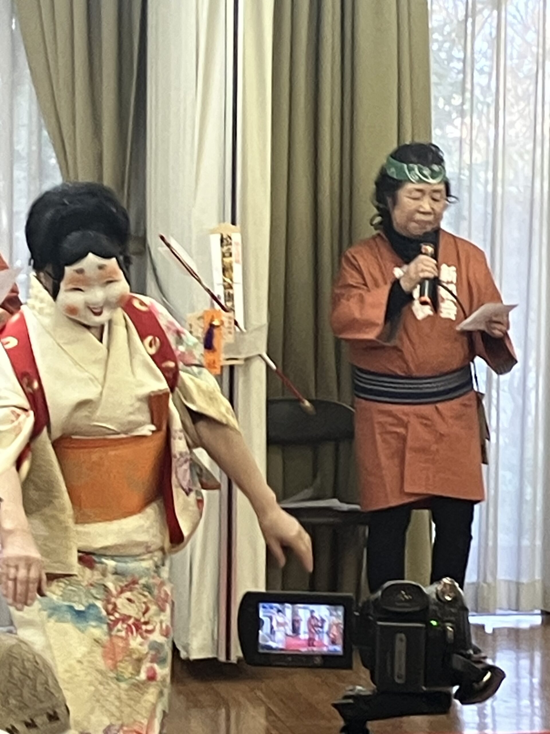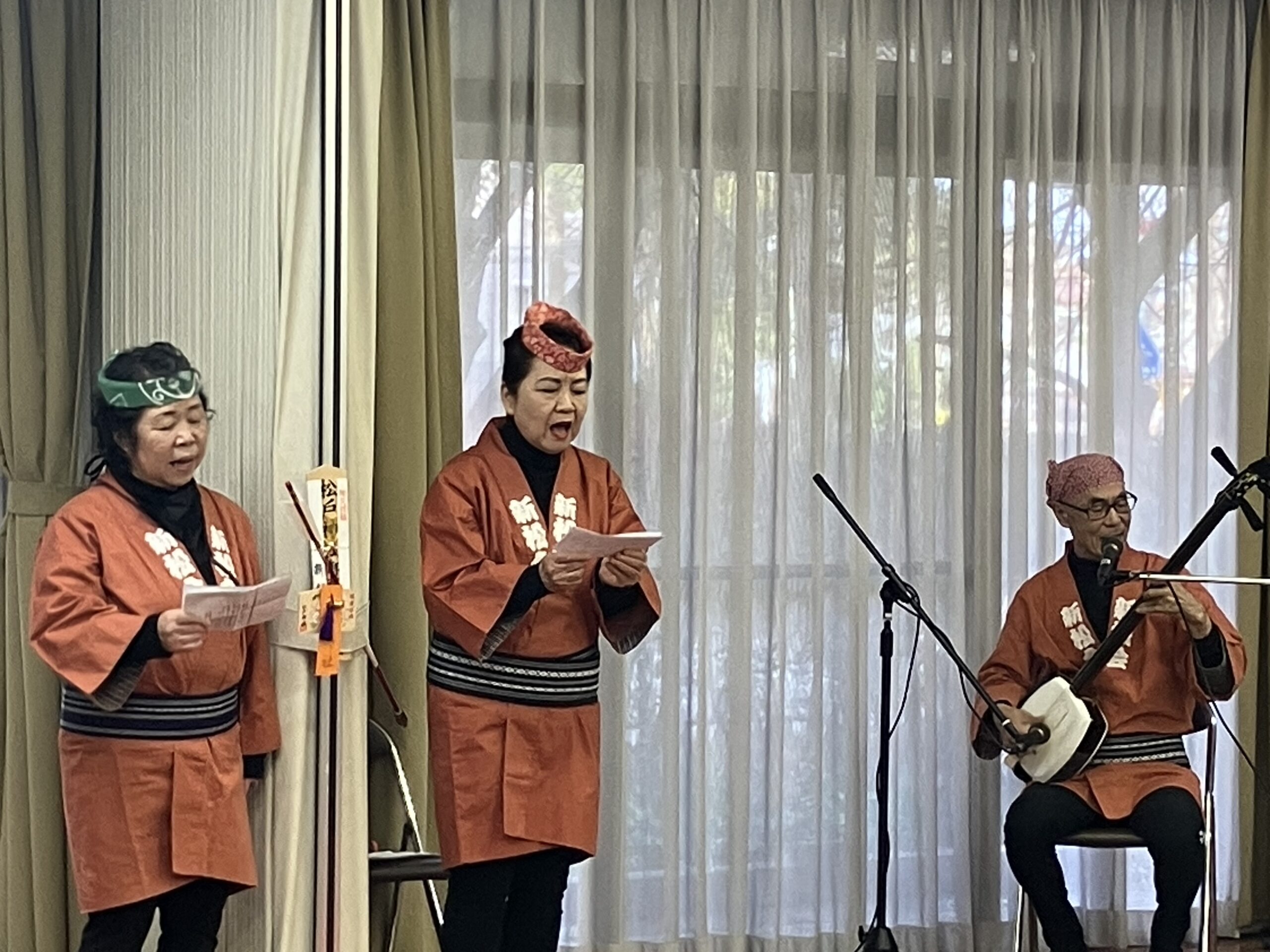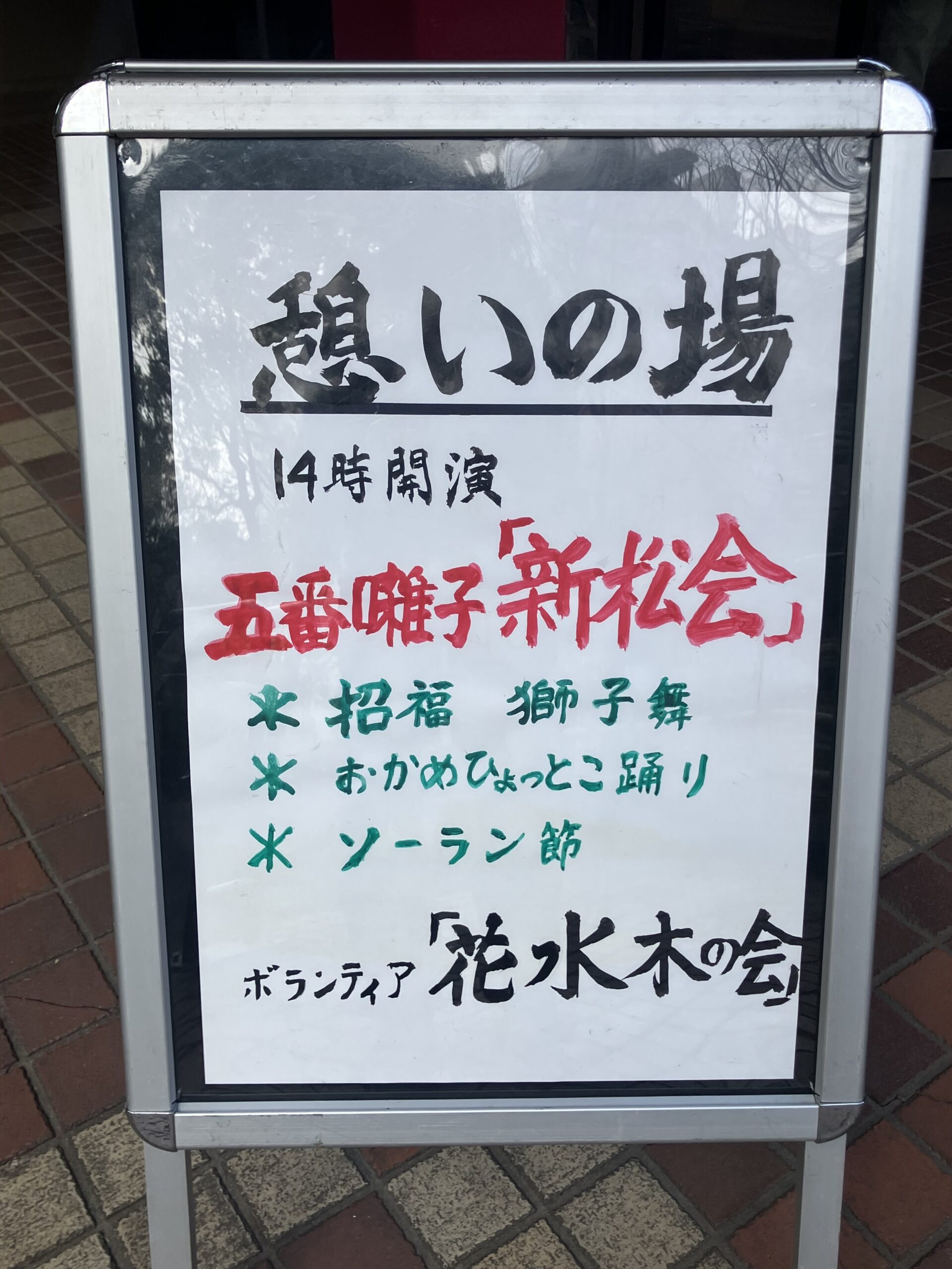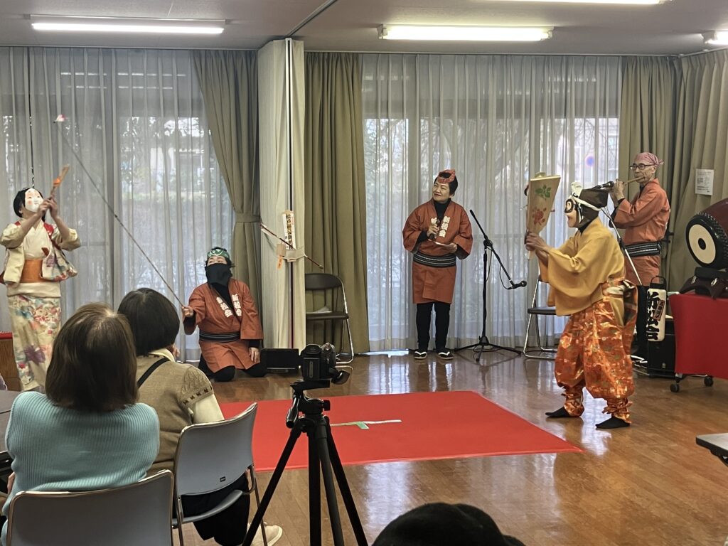 第256回 憩いの場 五番囃子「新松会」 憩いの場 2026.01.16 2026年1月15日(木) 13:00~16:00 新年にふさわしい獅子舞から始まりました! 切れのある獅子舞! 来場者の頭を厄払いにお獅子がガブリと嚙んで廻ります! 花水木の会からもおひねりを獅子の口に~! おかめひょっとこのコミカルな羽根つき 中村さんのひょっとこ踊り!網野さんのダイナミックな津軽三味線の演奏 網野さんの津軽三味線のお話の後、演奏に合わせて津軽甚句を歌い上げます! ソーラン節は踊り手も参加して! アンコールは、ソーラン節を皆さんと一緒に歌い、踊り、満員の会場は華やかに賑やかに終了!