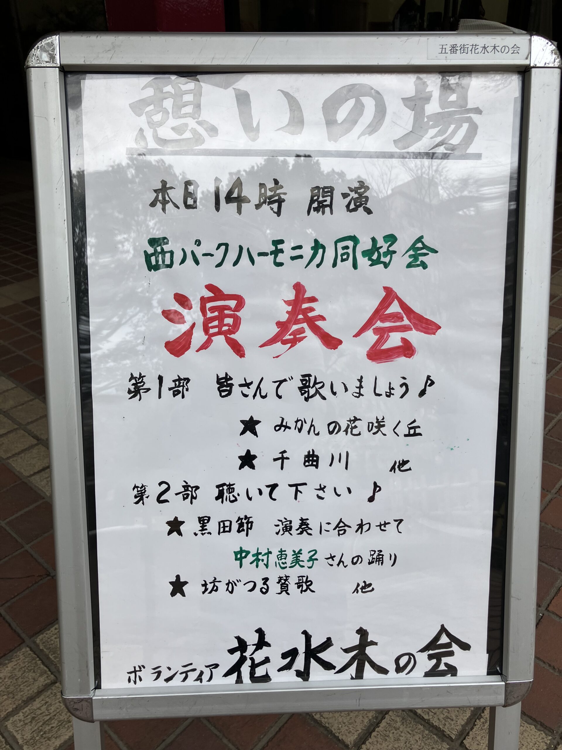 桜もちらほら咲き始めた春爛漫のいち日❣  西パークハーモニカ同好会の皆様の「みかんの花咲く丘」で演奏は始まりました。