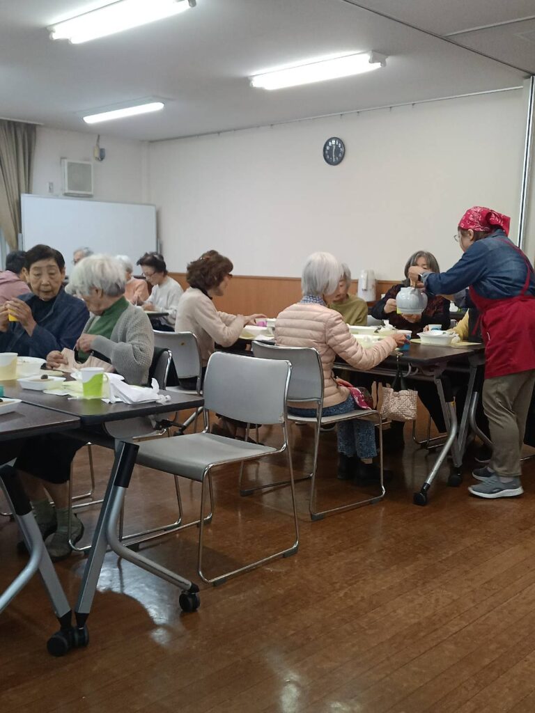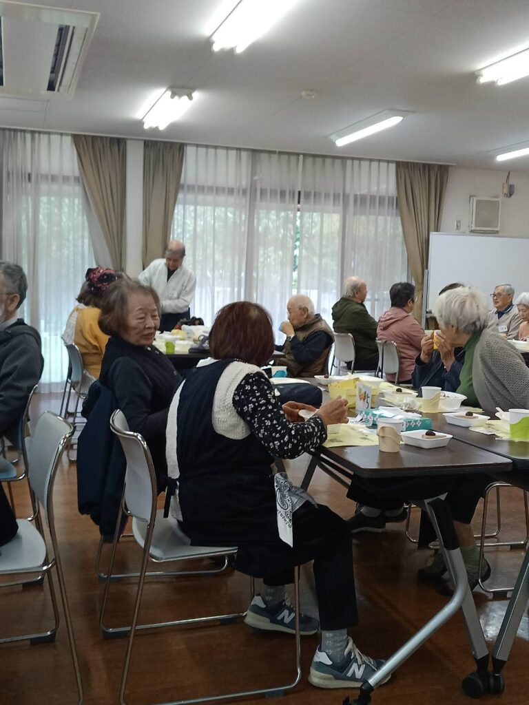 最近は、ご飯の量を少なめにしたりして、皆さん完食できるように工夫しています。今日は、皆さんデザートまで完食していました。同じテーブルの方達や久しぶりに会った方とお喋りに花を咲かせていました。